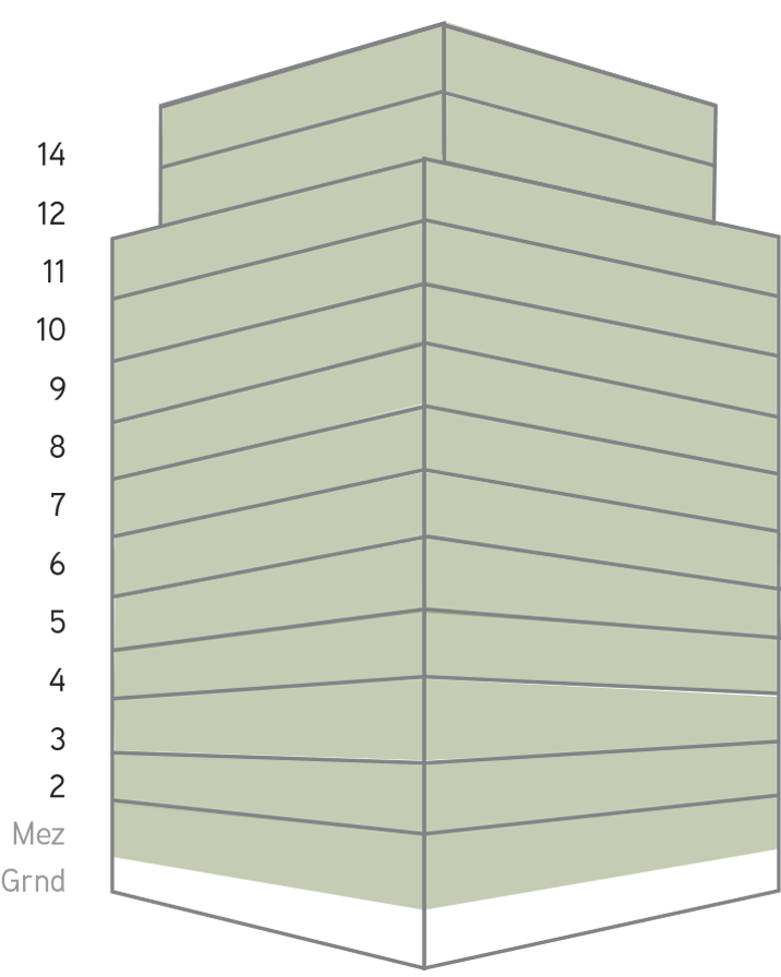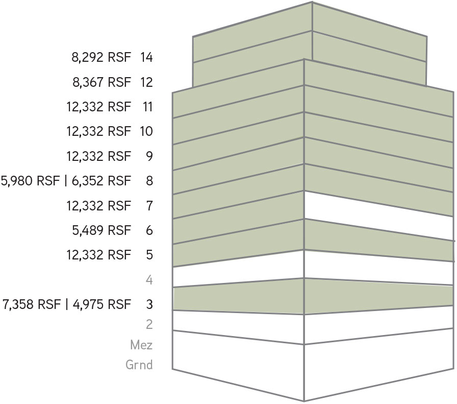 Floors 2–11: 12, 332 SF